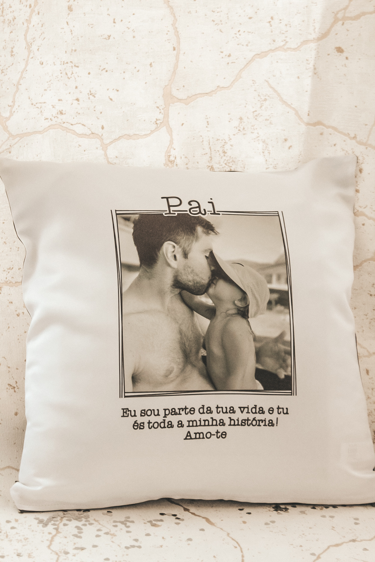 • Almofada branca com foto e texto carinhoso para o pai