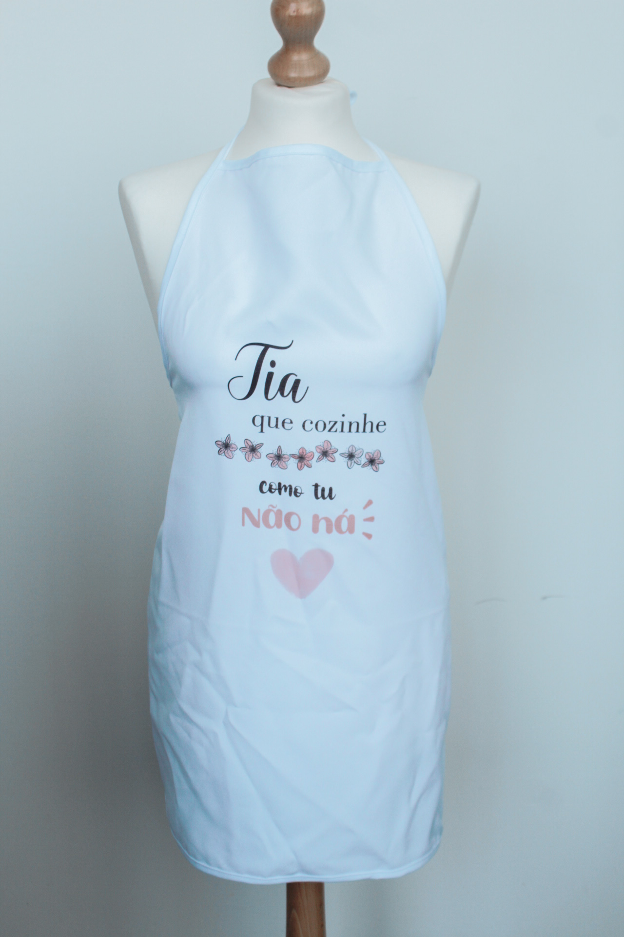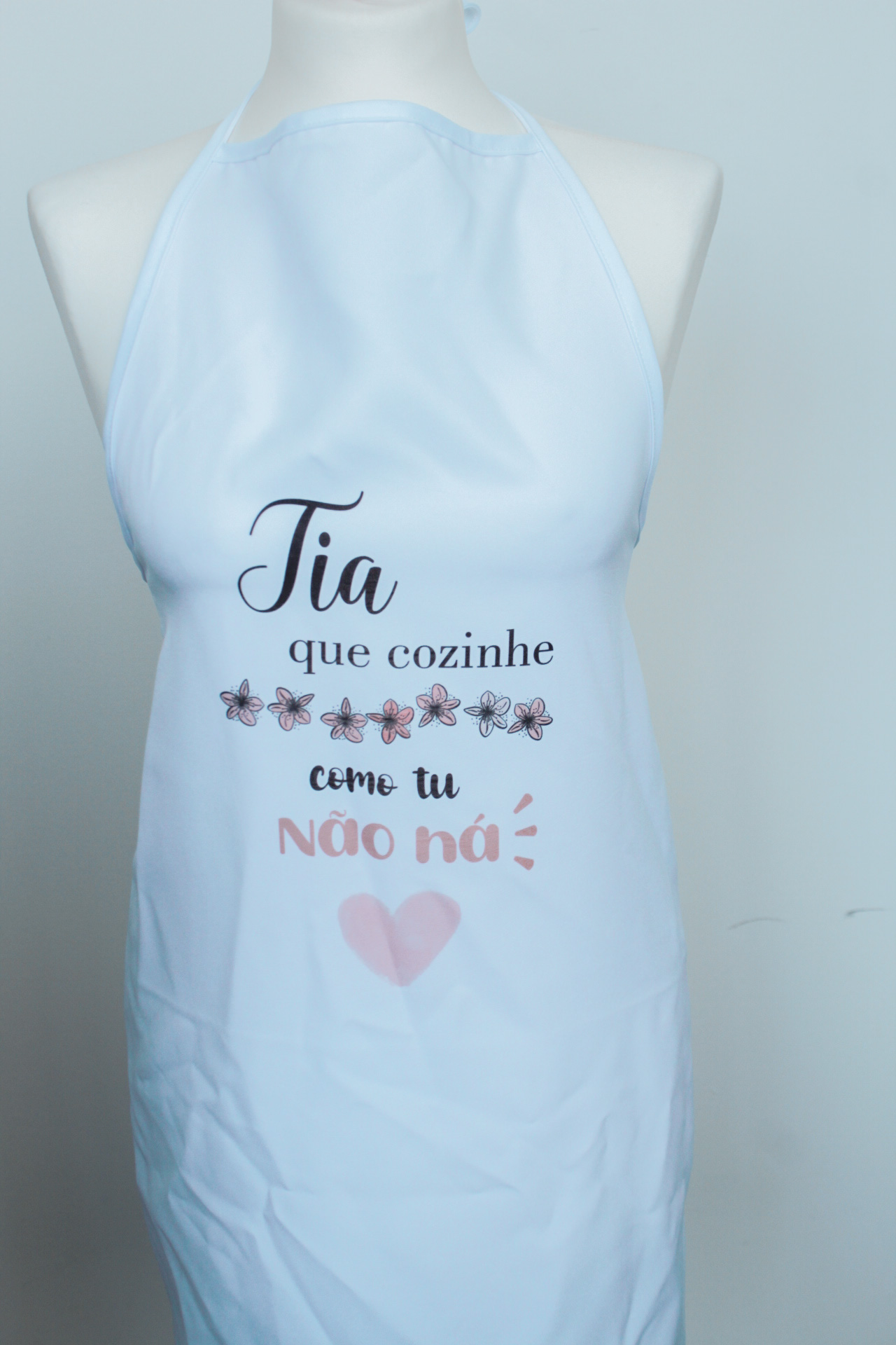 Avental tamanho único, serve para mulheres ou homens.