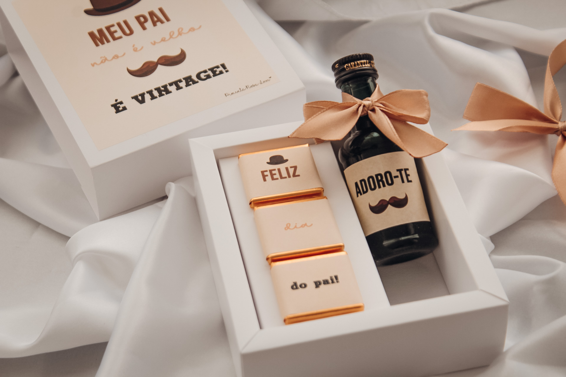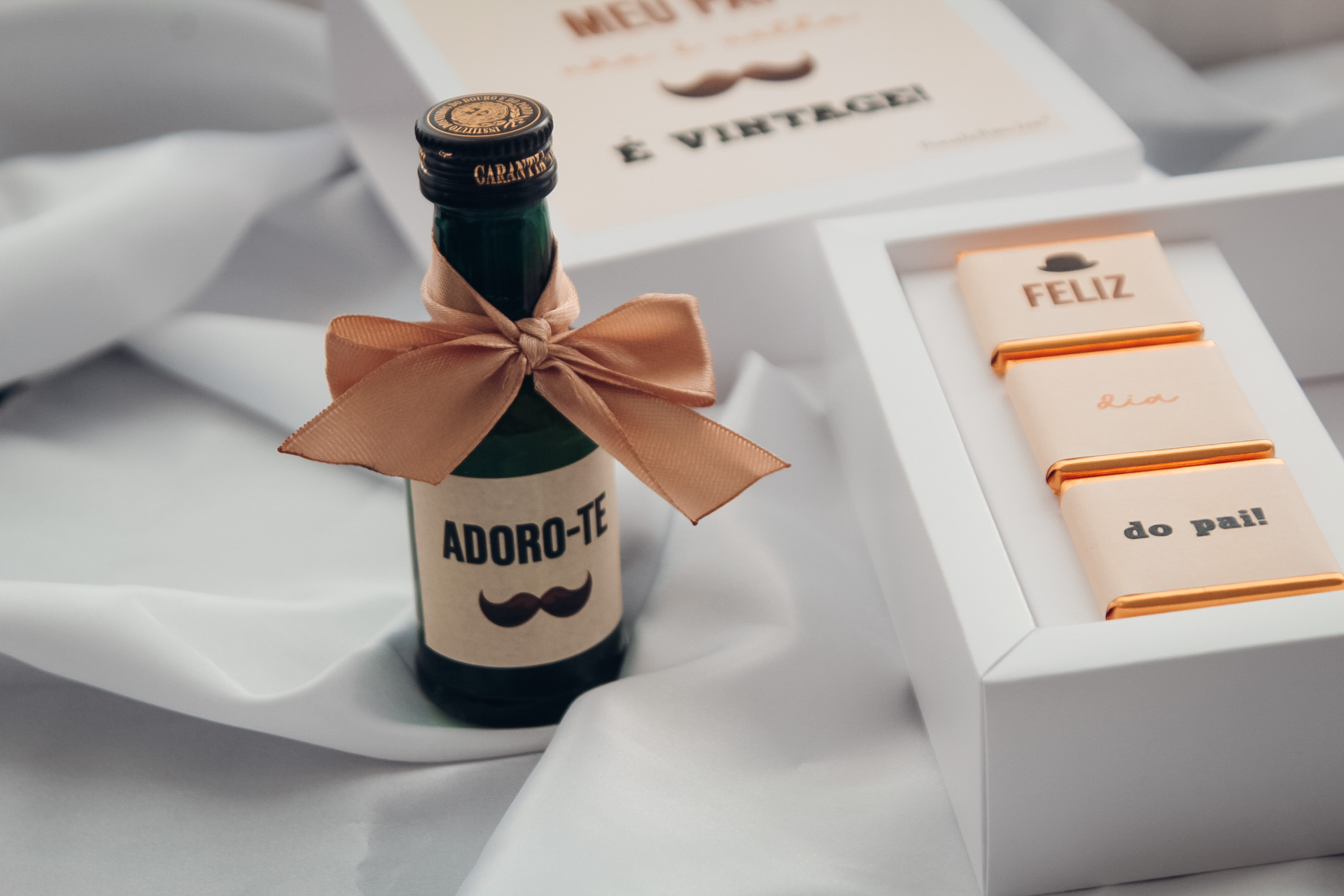 3 napolitanas de chocolate ao leite e miniatura de vinho do porto.