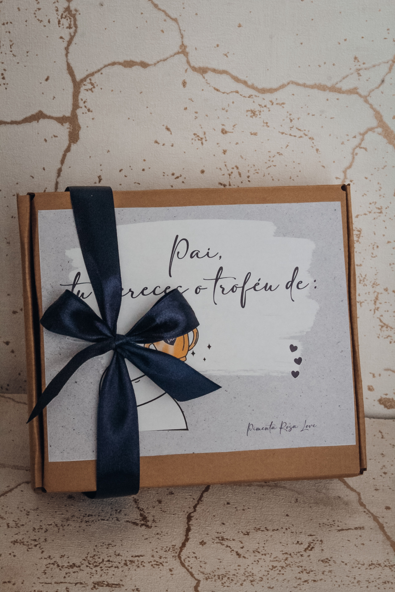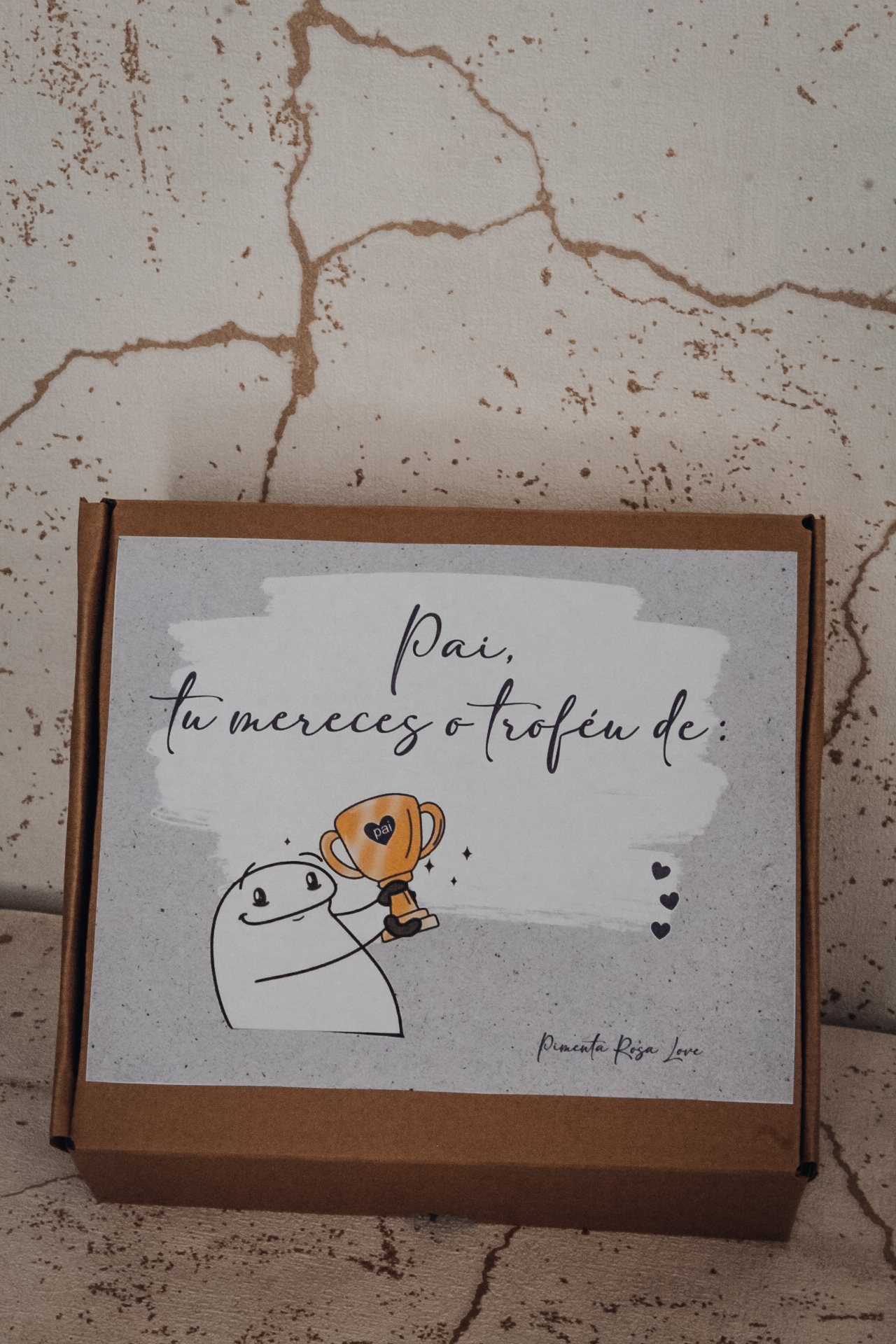 • Caixa de presente com chocolates, café, Nutella, troféu e cartão para o dia do pai