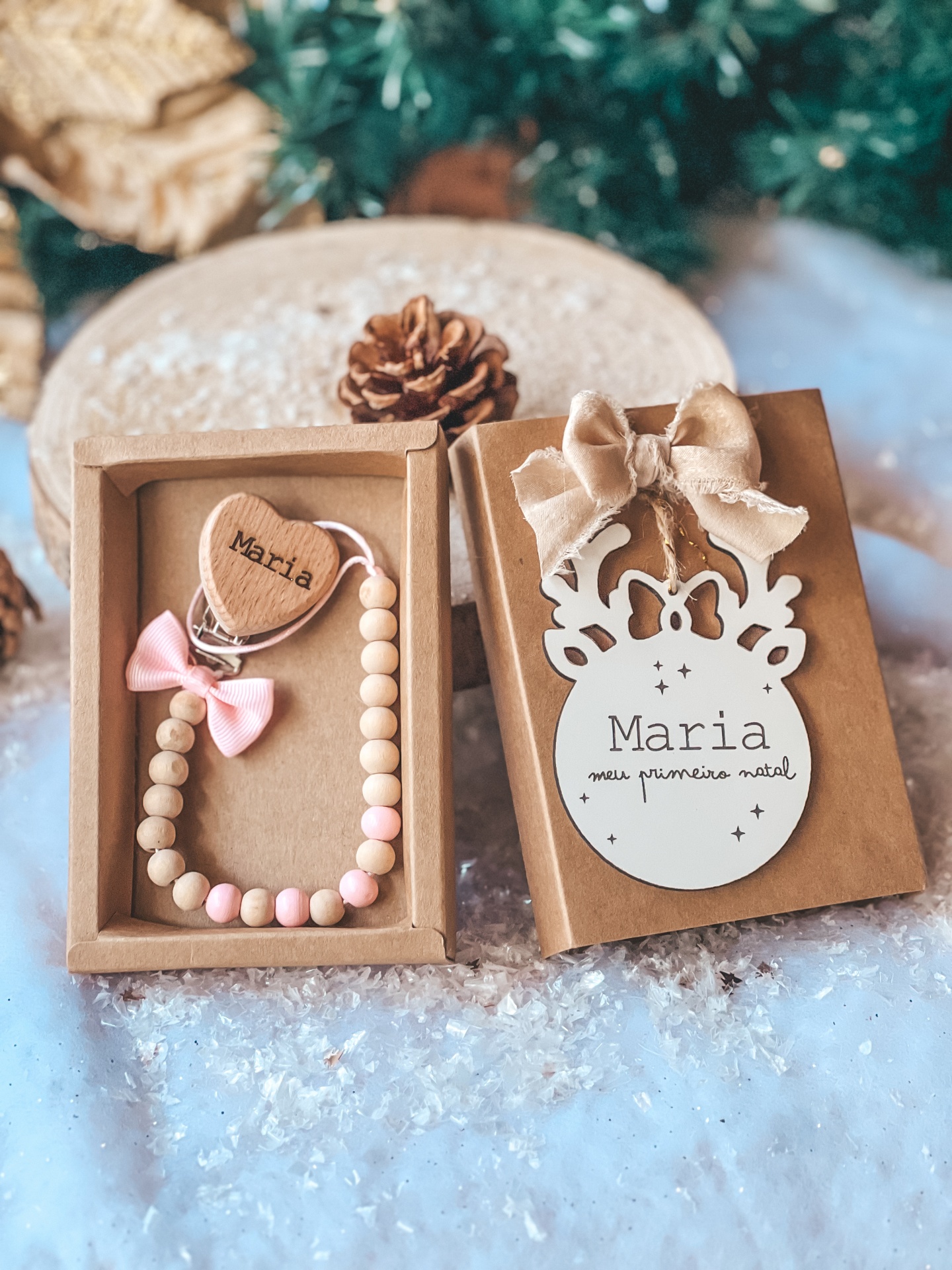 0 Caixa Prendedor e bola de natal menina 16,00 € Desconto de %. IVA incluído. Conjunto composto por: prendedor de chupeta e bola de natal personalizada. Ler mais Tempo estimado de produção: 5 a 10 dias ÚTEIS! INDICAR NOME/NOMES Quantidade Comprar Contactar Partilhar