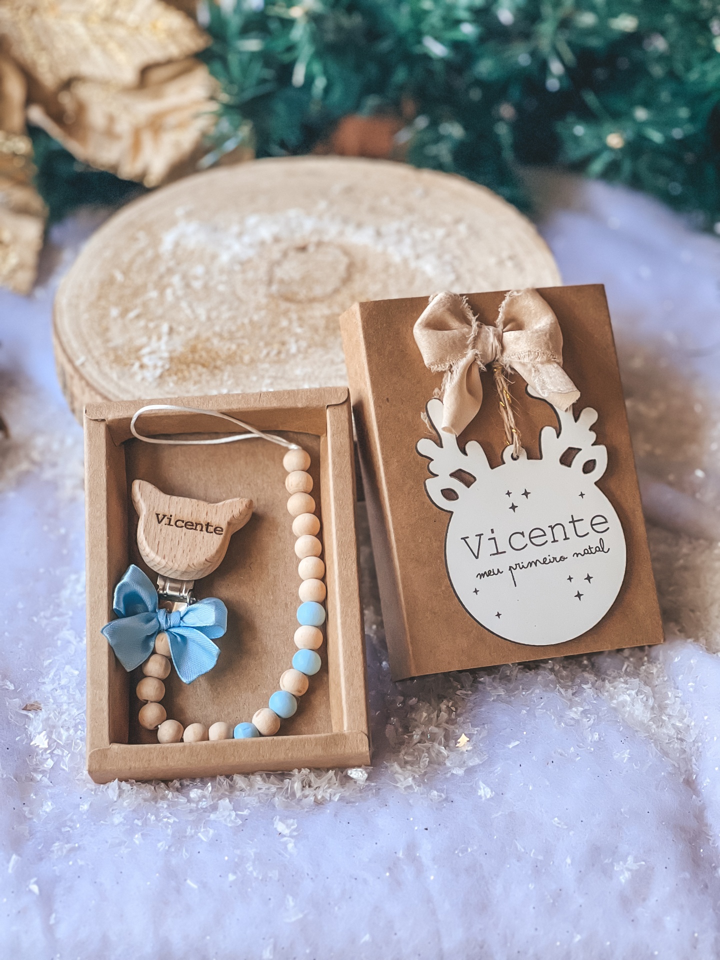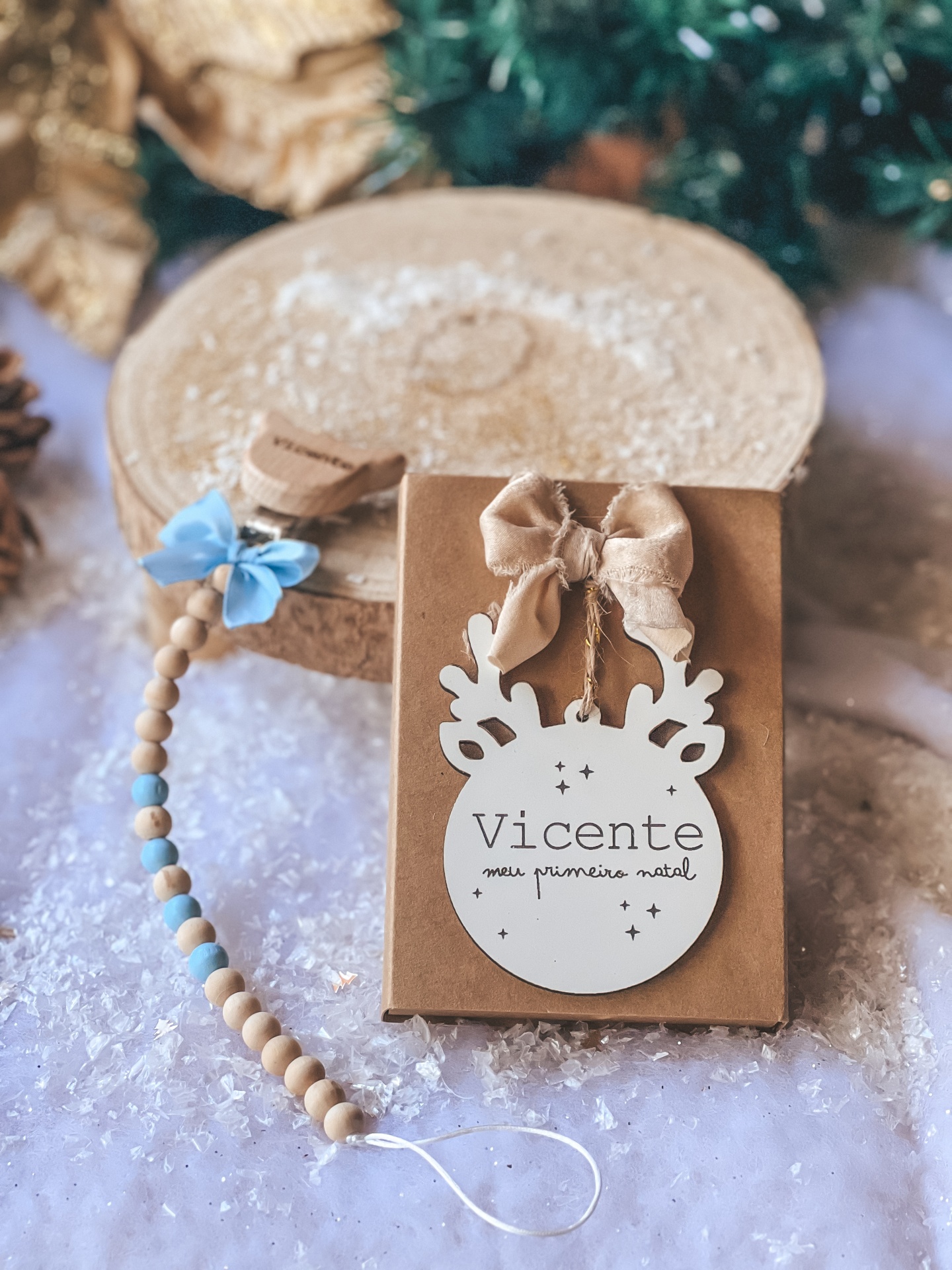 0 Caixa Prendedor e bola de natal menino 16,00 € Desconto de %. IVA incluído. Conjunto composto por: prendedor de chupeta e bola de natal personalizada. Ler mais Tempo estimado de produção: 5 a 10 dias ÚTEIS! INDICAR NOME/NOMES Quantidade Comprar Contactar Partilhar