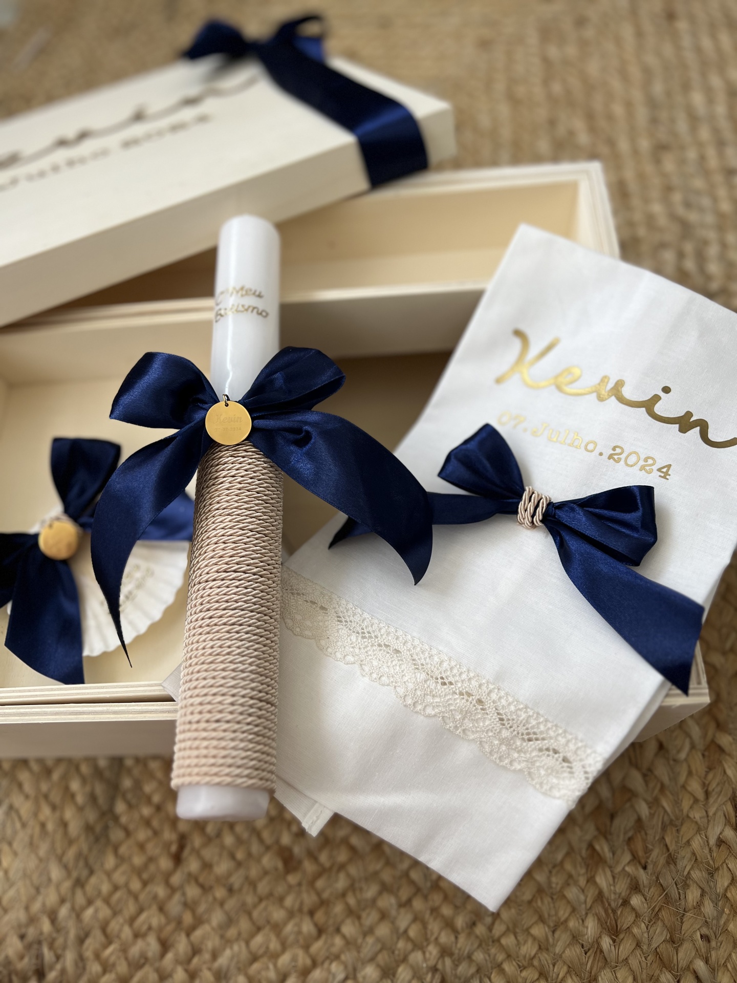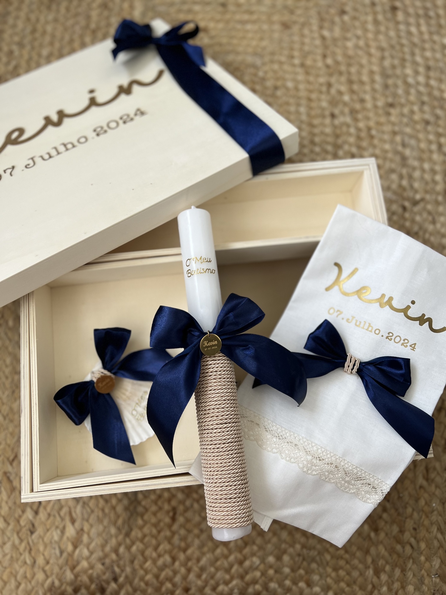 Caixa XXL AZUL ESCURO 60,00 € Desconto de %. IVA incluído. CONJUNTO DE CAIXA COM ESPAÇO PARA COLOCAR TAMBÉM A ROUPA. INCLUI: VELA, TOALHA E CONCHA. Ler mais Indicar nome e data: Tempo estimado de produção: 10 a 15 dias ÚTEIS! Quantidade Comprar Contactar Partilhar