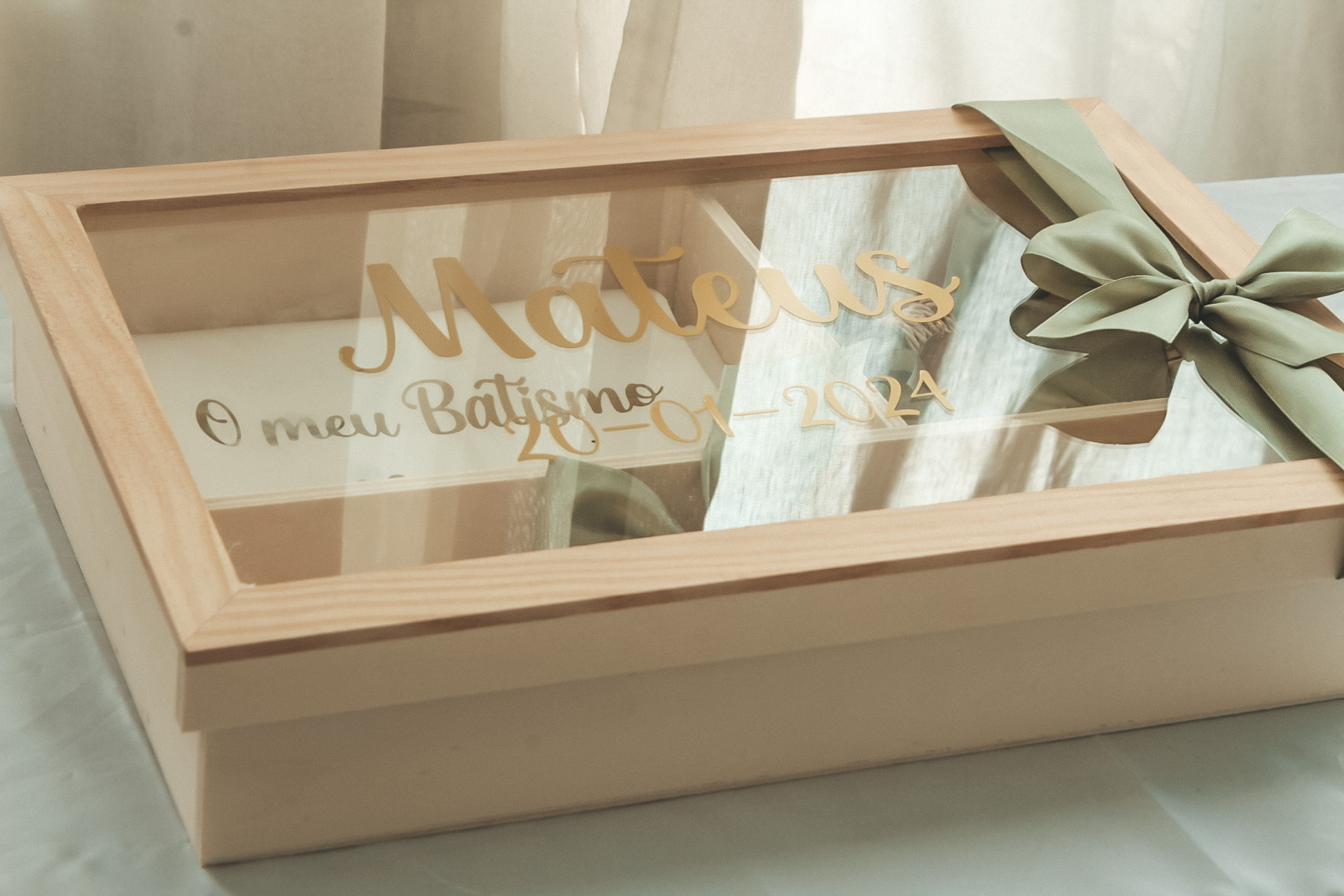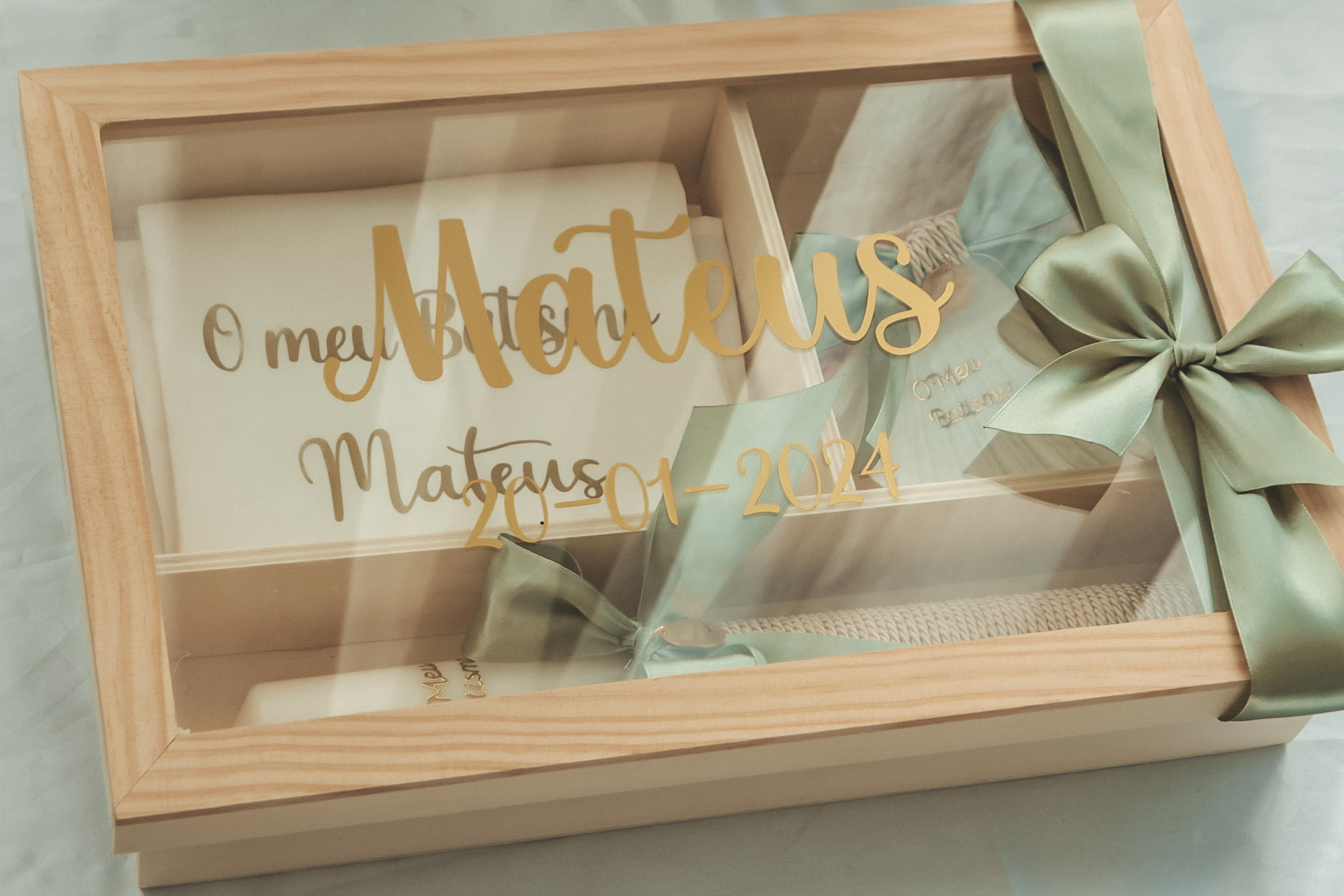 CAIXINHA BATISMO DOURADA/VERDE OLIVA 50,00 € Desconto de %. IVA incluído. CAIXINHA COM TOALHA PERSONALIZADA COM VINIL DOURADO caixa completa Ler mais Indicar nome e data: Tempo estimado de produção: 10 a 15 dias ÚTEIS! Quantidade Comprar Contactar Partilhar