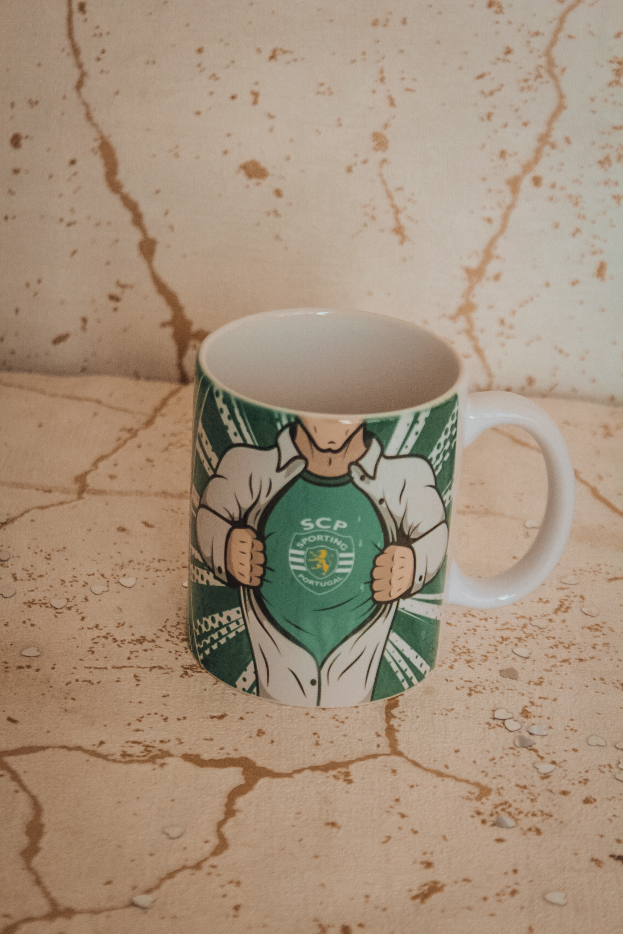 • Caneca branca com imagem gráfica do Sporting Clube de Portugal