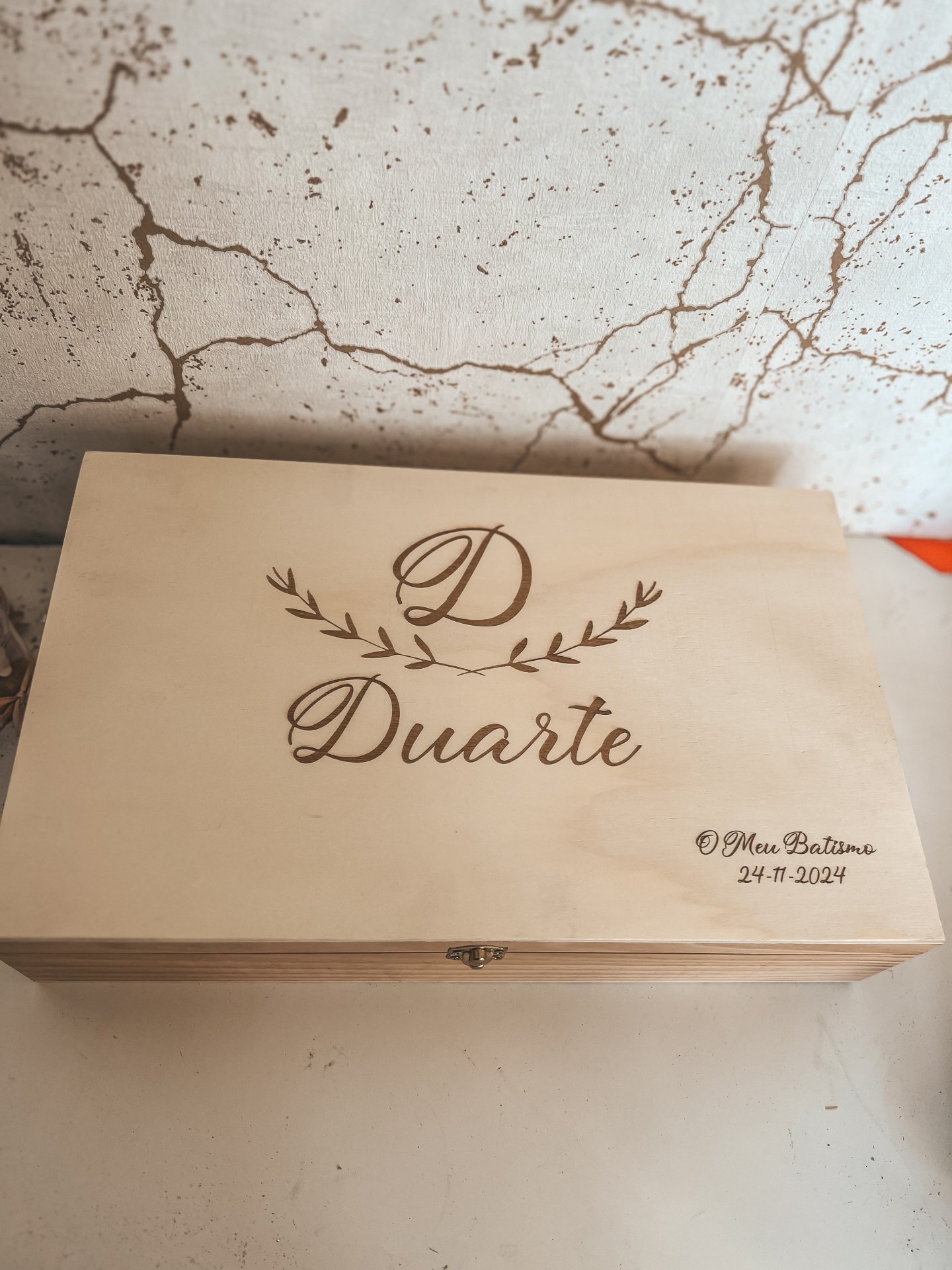 • Caixa de madeira com gravação personalizada Duarte e data 24-11-2024