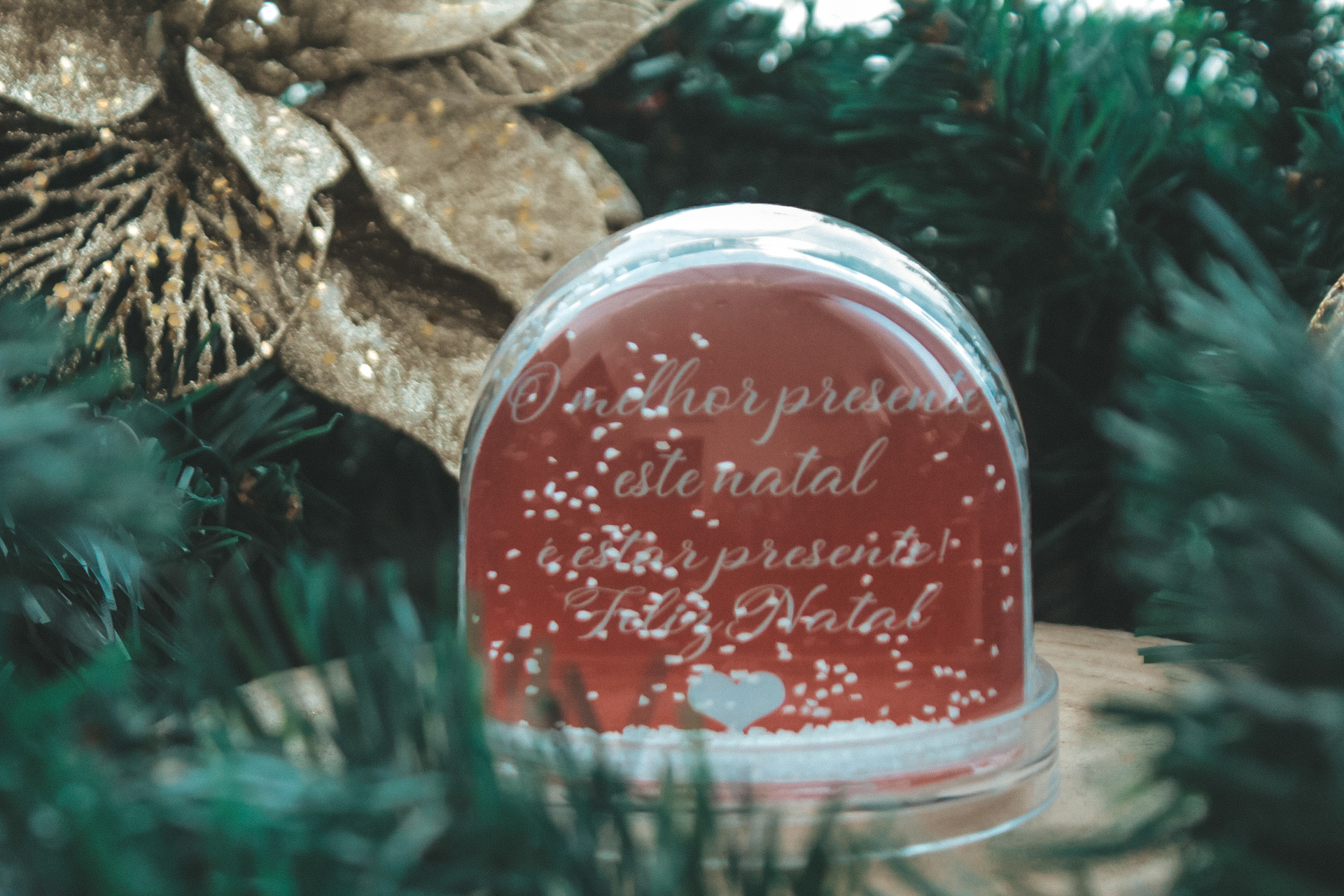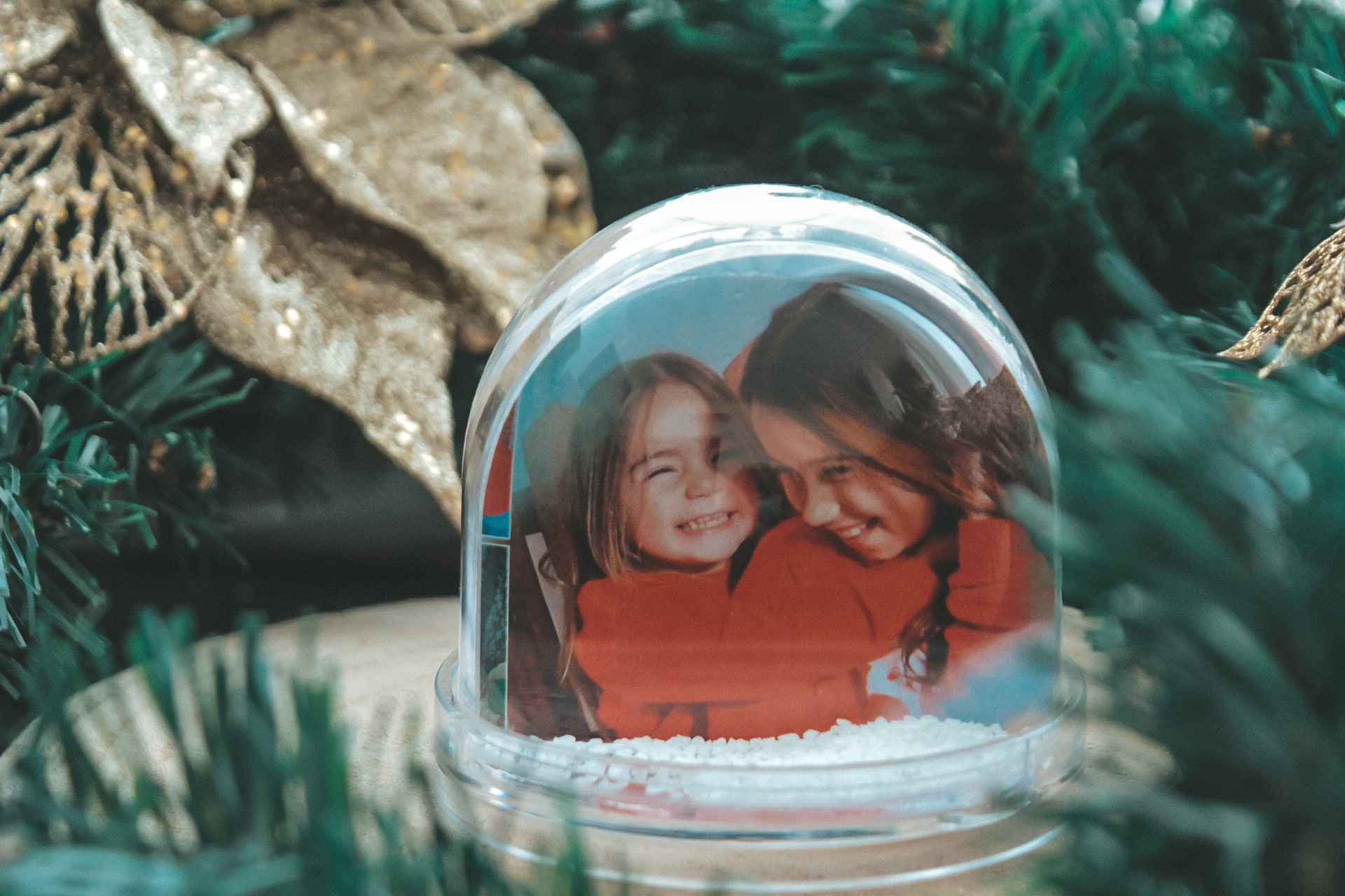 • Globo de neve com fotografia de crianças e decoração natalícia