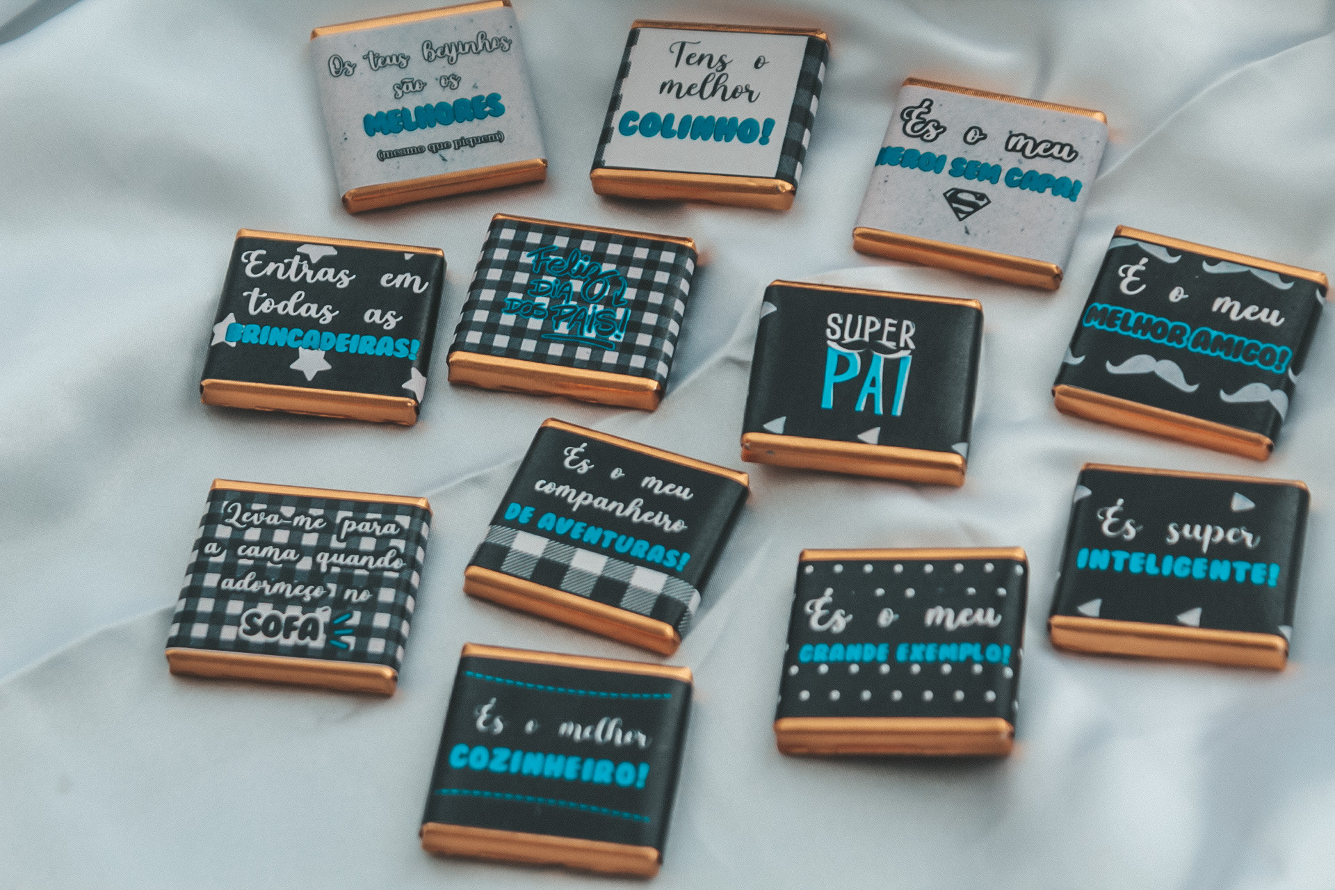 Lata com 12 chocolates personalizados.
