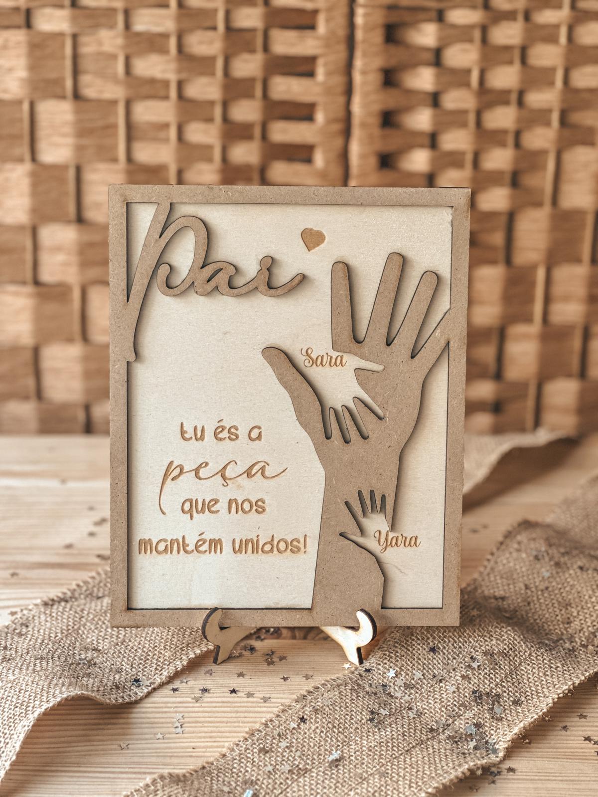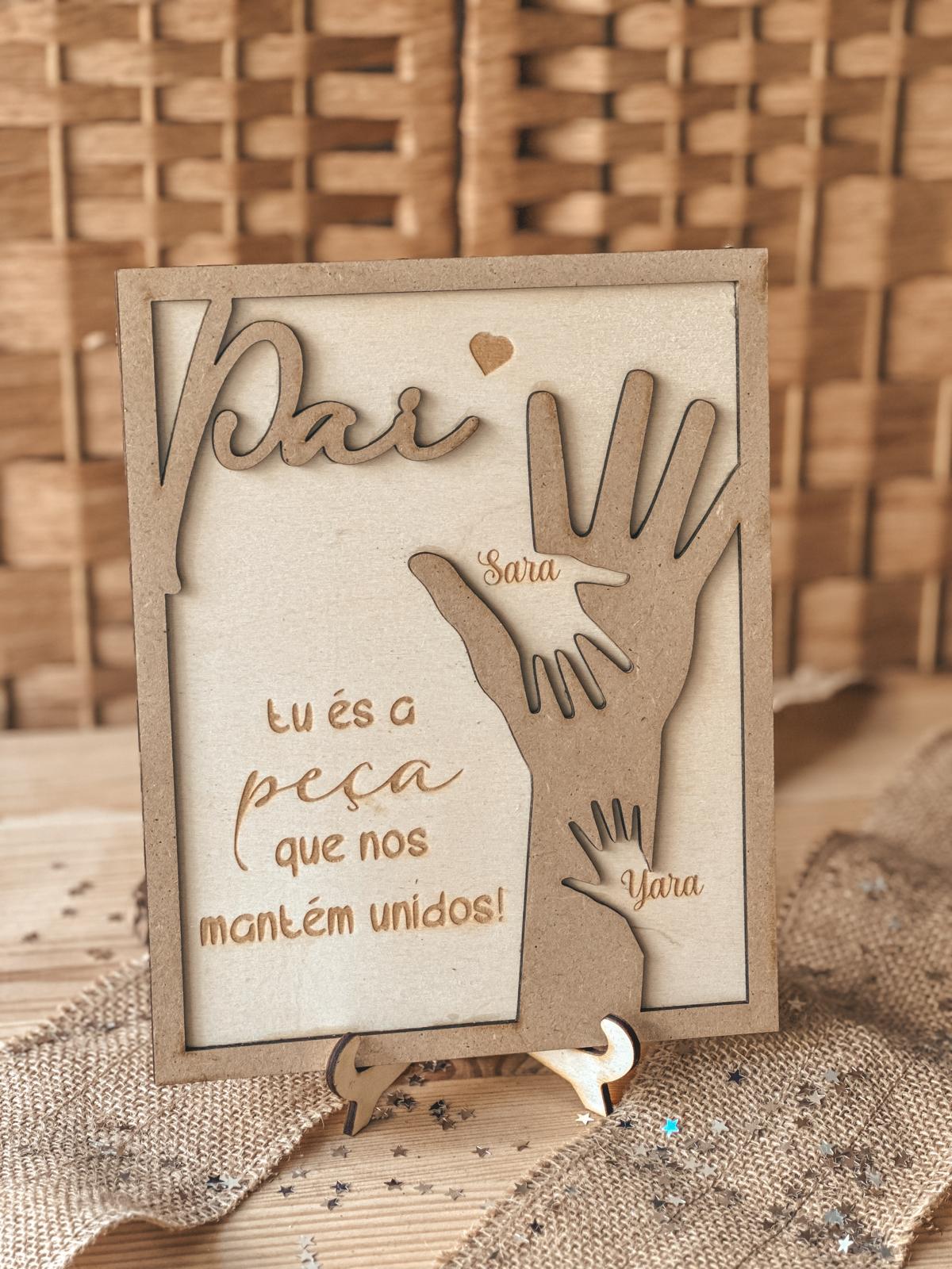 • Quadro decorativo MDF com mãos recortadas e texto sentimental para pai
